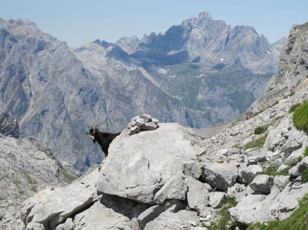 En este espacio vertical, solamente los rebecos y las cabras desafían la ley de la gravedad más elemental al moverse por las cicatrices que rasgan en todas las direcciones la faz de un guerrero dormido o sobre los mares de piedra suelta que las tormentas arrancan a las cumbres.
