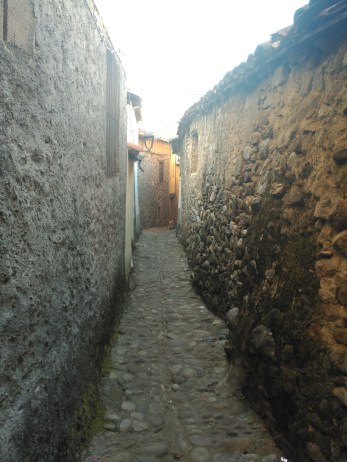 Hervás es uno de esos lugares fronterizos que tanto me gustan por su mestizaje. Perteneció al ducado de Béjar (señorío de los Zúñiga) hasta 1816, y poco después pasa a ser una villa extremeña, aunque está más cerca de Salamanca (98 km) que de Cáceres (113 km).