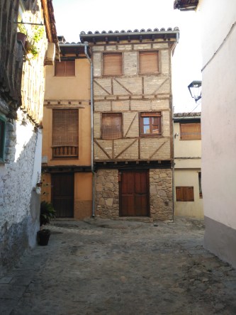 La construcción típica del llamado barrio judío es en realidad arquitectura popular de la sierra, que consiste en el uso de sillarejo, adobe y madera, con paredes protegidas por teja árabe, pero faltan los soportales en los que los comerciantes expondrían sus productos al resguardo de las inclemencias atmosféricas, el cementerio, los baños y falta la ubicación documentada de una sinagoga, imprescindible en su cultura.