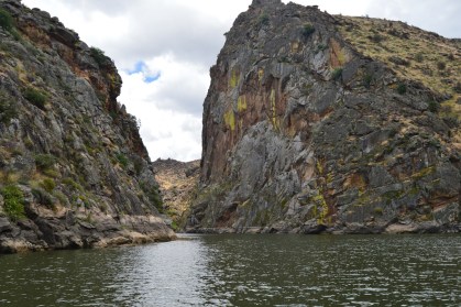 Después de arrastrarse, silencioso y manso, por la aplastada barriga castellana, el río Duero da un inesperado giro de más de 90 grados hacia el sur y despeña sus aguas por los muslos de Los Arribes para descender 400 metros entre murallas de granito que separan durante más de 100 kilómetros los dos países de la península ibérica. Es entonces, ya en Portugal, cuando empieza a ser navegable hasta el final del trayecto.