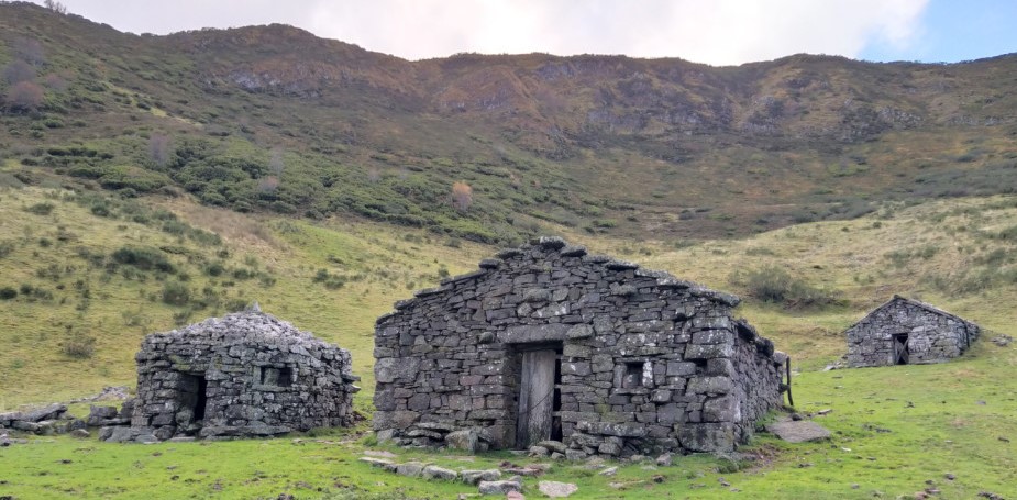 Los brañeiros subían todas las tardes para ordeñar y bajaban la leche al día siguiente, la noche la pasaban en la cabana, compartiendo el espacio con las vacas. Son construcciones primitivas, acaso prehistóricas, que usan los elementos más cercanos (piedra, madera y escoba) para colocarlos con la maestría de los mejores artesanos.