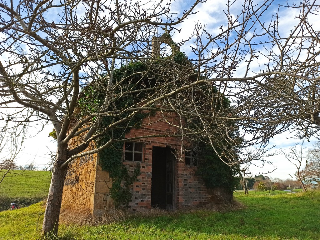 La capilla fue destruida en la Guerra Civil y algunos vecinos quisieron reconstruirla con la ecléctica estética de los años sesenta. El tejado es de bóveda de medio cañón de ladrillo y vigas de hierro, y en la fachada dos ventanucos cuadrados, uno a cada lado de la puerta, dan luz al interior de la estancia, donde se amontonan tejas, cemento, ladrillos y otros elementos propios de la construcción, al lado de un sólido altar de piedra, que da fe del indudable espíritu religioso del edificio. Pero estos entusiastas vecinos tuvieron que parar la restauración cuando el dueño del prado donde se ubica la capilla se negó a continuar con aquel desatino, y así llega hasta nuestros días, una obra incluida en el Catálogo del Patriminio Cultural de Asturias.
