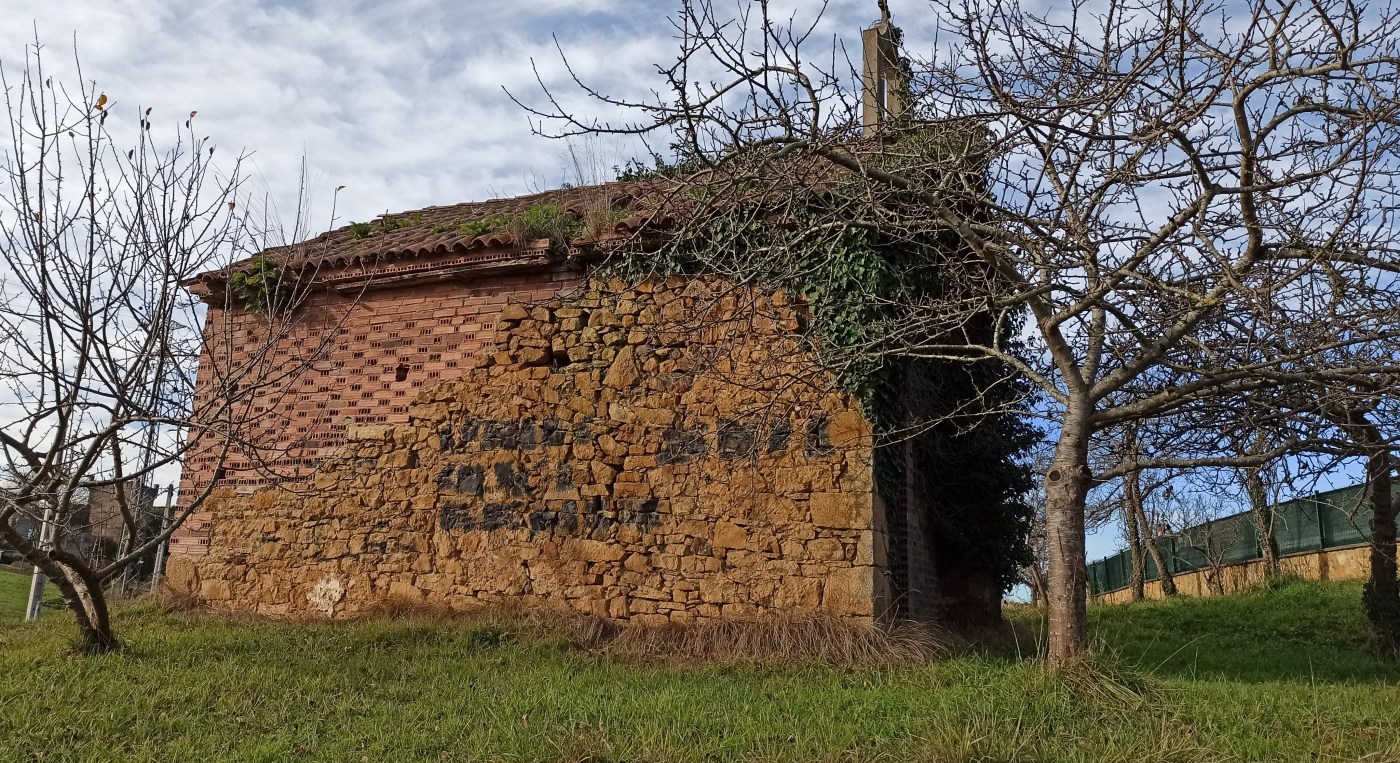 A pesar de estar en un cruce de caminos, la fachada mira para la parte contraria, hacia el norte, una anomalía en las construcciones religiosas tradicionales, que suelen abrir sus puertas a la luz de poniente. Con una sencilla planta rectangular, solo se conserva una parte de sus muros de piedra labrada. El resto es un relleno con ladrillos sin rematar.