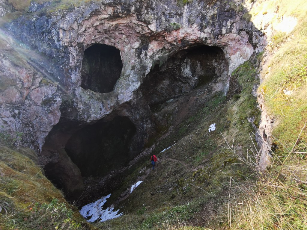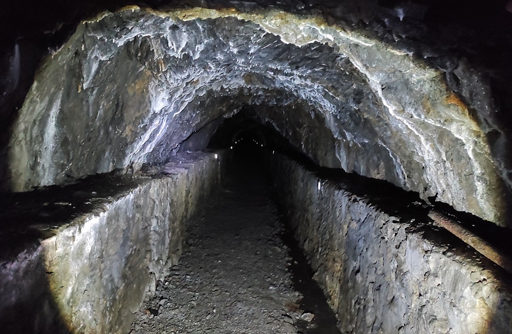 La entrada a la mina ya tiene forma de calavera. El sistema de pilares que la forman le dan esa imagen siniestra de muerte. Paradójicamente, son esos pilares los que le dan vida porque constituyen la protección necesaria para que se mantenga incólume desde el Neolítico.