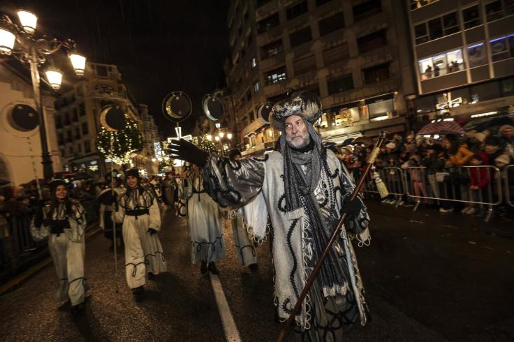 Si esa vestimenta va acompañada por un séquito de estética oriental en la noche de Reyes es que nos estamos acercando a la Cabalgata de Oviedo, que desde hace muchos años mantiene esa tradición bíblica.