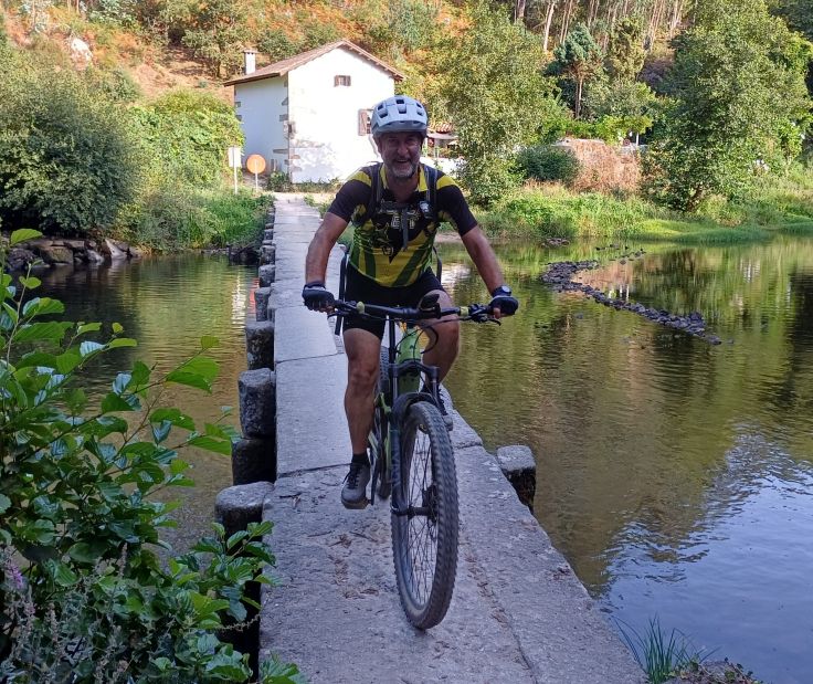 Puente sobre el río portugués Neiva. Al fondo, un molino